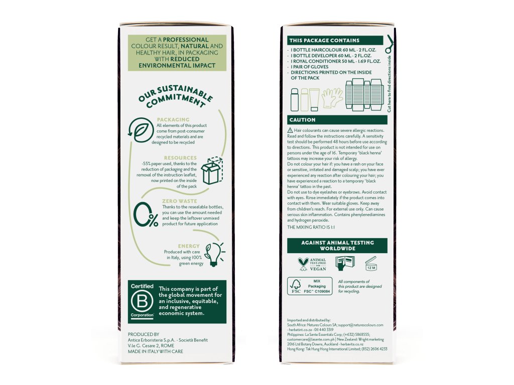 The manufacturer guarantees that Herbatint colors are not tested on animals, are also suitable for vegans, and their paper packaging, which is of controlled origin, is fully recyclable.