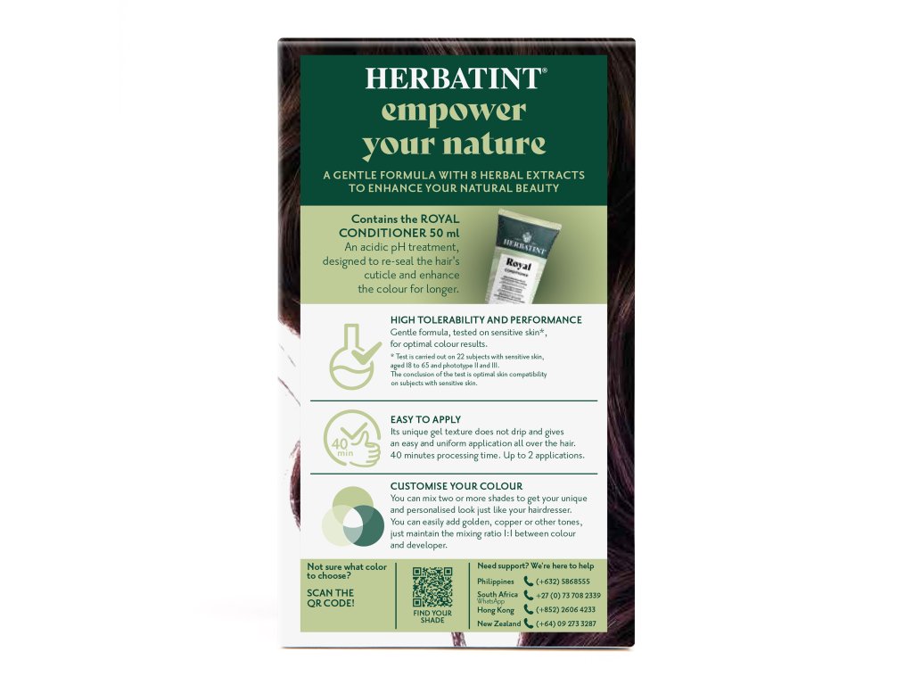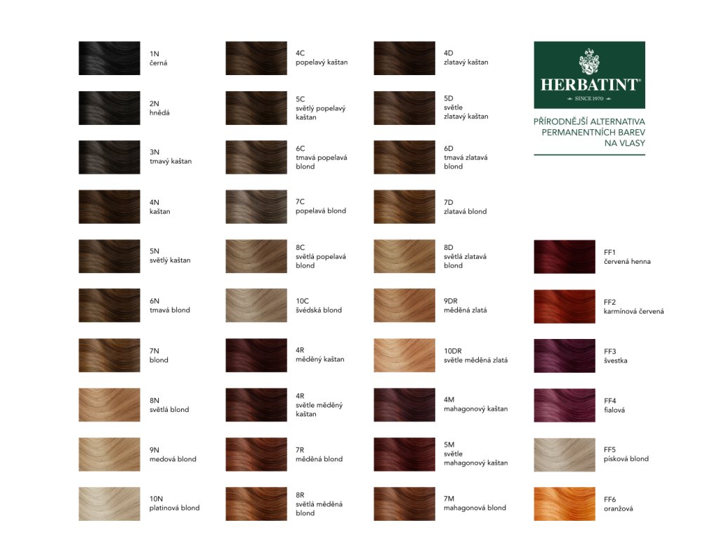 The fact that Herbatint dyes contain a much smaller amount of sensitizing substances than conventional hair dyes is also reflected in the conclusion of testing the product on specially selected individuals with a predisposition for sensitive skin, which reacts with redness or edema within 48 hours after exposure. Out of 160 tests, the entire Herbatint color range showed good to very good tolerance in subjects with such sensitive skin. The 36 natural-looking shades of permanent hair color contain 8 different organic herbal extracts, the combination of which strengthens and protects the hair while soothing the scalp.