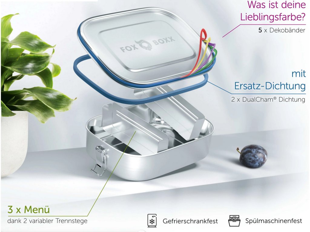 Tato svačinová nerezová krabička neobsahuje nebezpečné látky, ani mikroplasty, takže je nepřenáší ani do jídla, ani do životního prostředí.