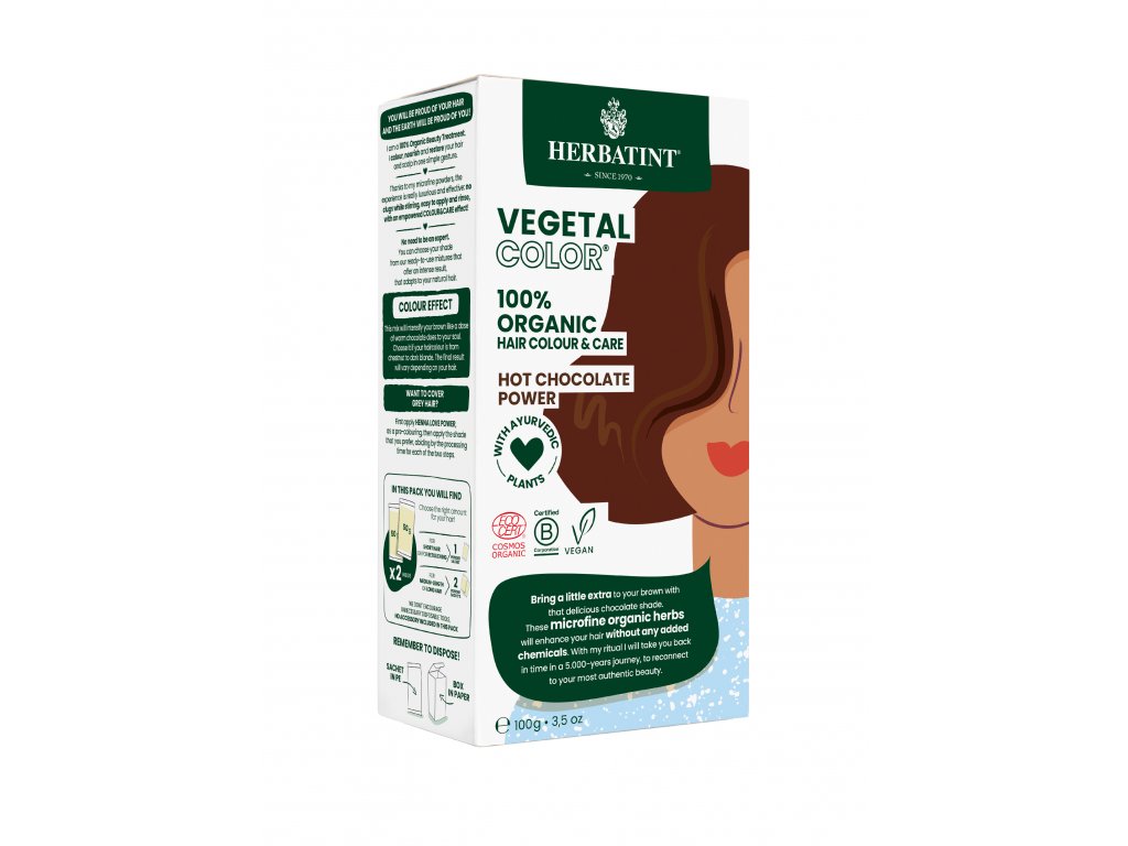 HERBATINT VEGETAL COLOUR bio rostlinná barva na vlasy HOT CHOCOLATE POWER – horká čokoláda