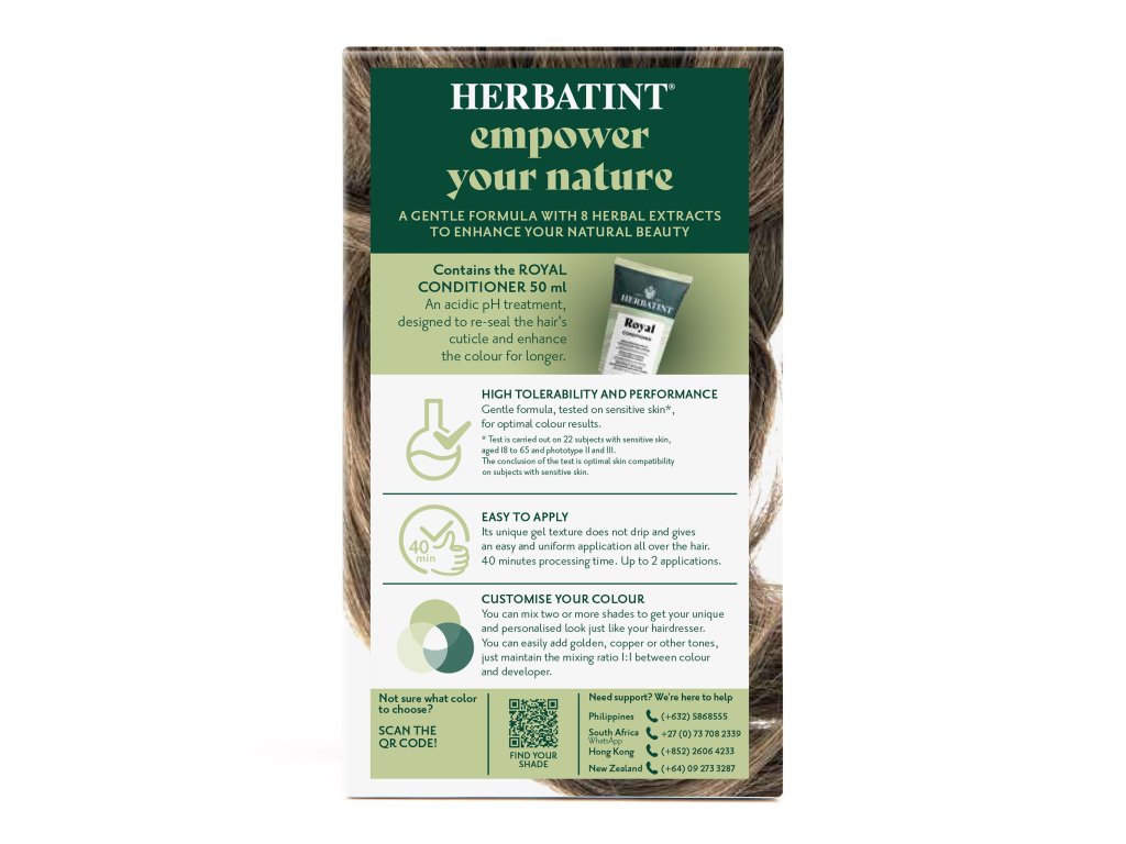 Fakt, že v barvách Herbatint je obsaženo daleko menší množství senzibilizujících látek, než v běžných barvách na vlasy překládá i závěr testování produktu na speciálně vybraných jedincích s dipozicemi pro citlivou kůži, která reaguje začervenáním, nebo edémem do 48 hodin po expozici. Ze 160 testů celá barevná škála Herbatint vykazovala dobrou, až velmi dobrou snášenlivost u subjektů s takto citlivou pokožkou. 36 přírodně vypadajících odstínů permanentních barev obsahuje 8 různých organických bylinných výtažků, jejichž kombinace posiluje a chrání vlasy a zároveň zklidňuje pokožku hlavy.