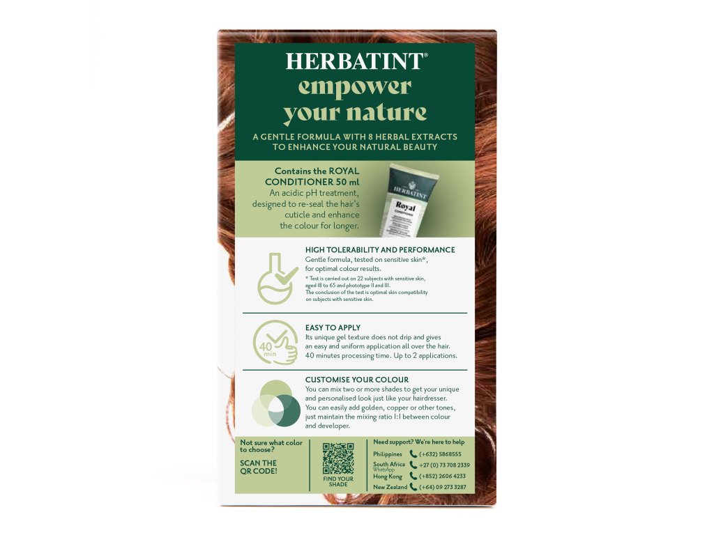 Fakt, že v barvách Herbatint je obsaženo daleko menší množství senzibilizujících látek, než v běžných barvách na vlasy překládá i závěr testování produktu na speciálně vybraných jedincích s dipozicemi pro citlivou kůži, která reaguje začervenáním, nebo edémem do 48 hodin po expozici. Ze 160 testů celá barevná škála Herbatint vykazovala dobrou, až velmi dobrou snášenlivost u subjektů s takto citlivou pokožkou. 36 přírodně vypadajících odstínů permanentních barev obsahuje 8 různých organických bylinných výtažků, jejichž kombinace posiluje a chrání vlasy a zároveň zklidňuje pokožku hlavy.