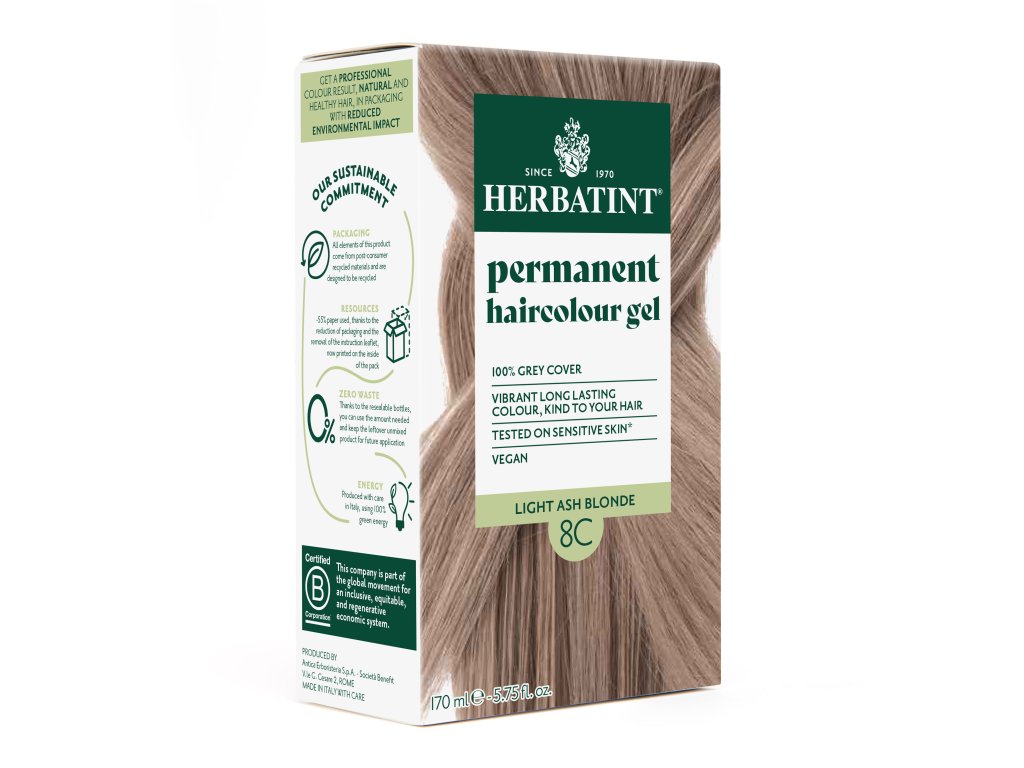 POŠKOZENO - Herbatint 8C permanentní barva na vlasy světle popelavá blond